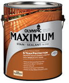 Olympic MAXIMUM Tintable Solid Exterior Wood Stain and Sealer (1-Gallon Olympic maximum Clear waterproofing sealant is olympic station's best sealant. $40.98. This item: Maximum 5 Gal. A penetrating acrylic/oil formula that stains and seals wood to offer great protection against water damage, UV rays, scuffs and provides a mildew-resistant coating. Use our wood stain store locator to find the closest Olympic Stains retailer location. Hair Removers & Lint Rollers Shop All.